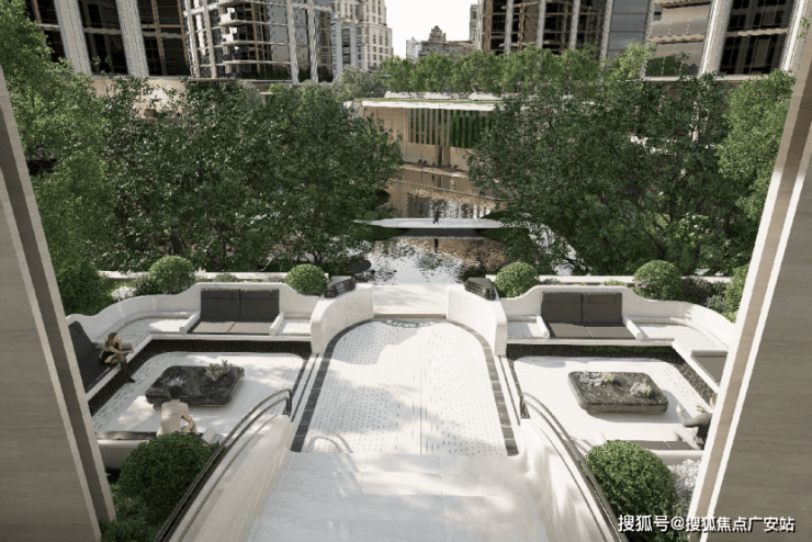 澐启滨江还打造了延展超百米的庄园景观.设计灵感源自杰弗里·巴瓦的庄园哲学,建筑单体与绿化植被交错融合,形成一系列嵌入自然的观景单元.
