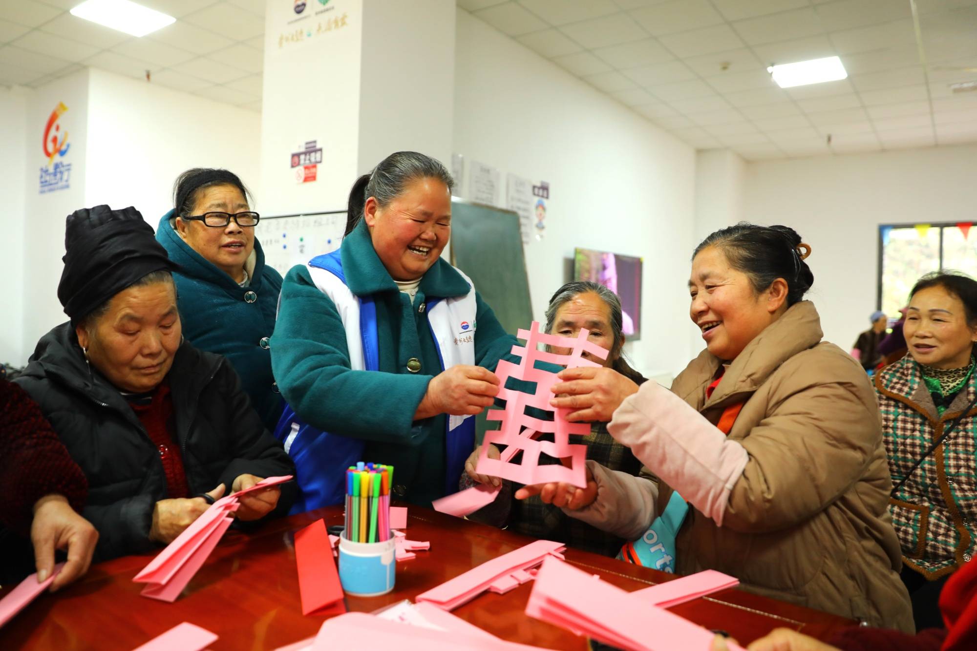 清晨的仰阿莎街道思源社区老年活动中心,活力满满:老人们跟着广播体操旋律晨练,神采飞扬;晨练后,在志愿者陪伴下玩叠叠乐、做非遗手工、剪窗花,乐享惬意时光。