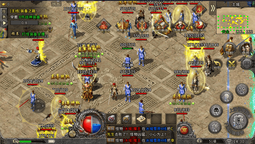新手地图(1-30级):冰封平原、初雪村外围,怪物强度低、密度适中,适合新手熟悉技能与操作,掉落基础装备与少量元宝,是前期过渡的核心地图。