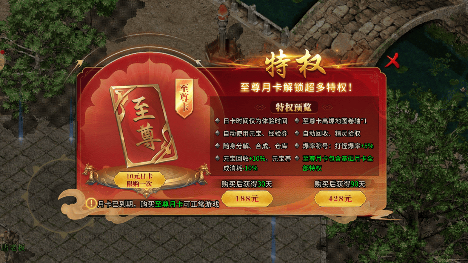 点卡与特权选择同样关键。长期玩家长期搬砖必选至尊月卡(188元/月),可解锁自动拾取、自动回收、随身合成、爆率+5%、元宝回收+10%等核心特权,大幅降低手动操作成本,提升单位时间刷怪收益。平民玩家至少需解锁基月卡权限,避免因功能缺失导致效率过低。月卡特权无需过早激活,建议30级解锁核心玩法后开通,避免前期点卡资源浪费。