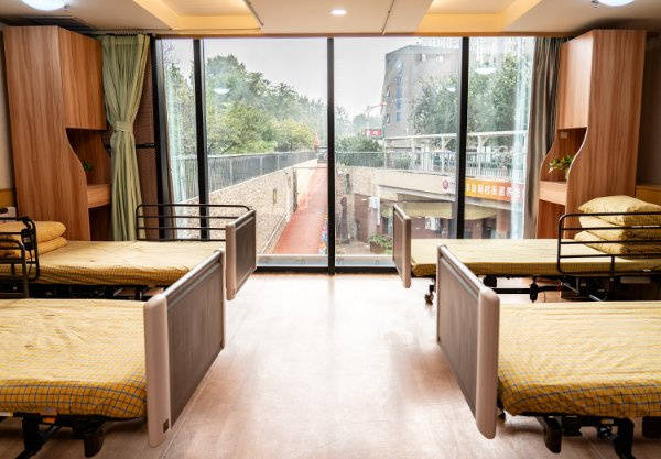 舒适居住|配备多功能医疗床、安全呼叫设备,房间温馨舒适,适配不同照护等级需求;