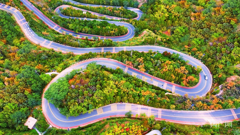 初冬时节,在兰州九州台下的罗九公路上,来来往往的游客欣赏着路边如画的风景。远远望去,五彩斑斓的道路仿佛一条蜿蜒飞舞的彩带,襟起群峰绿色,起伏山野之间,消失在白云深处。