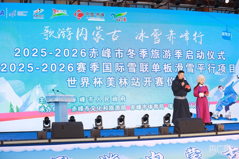 当日,2025—2026赛季国际雪联单板滑雪平行项目世界杯美林站首日决赛落下帷幕,由赤峰市人民政府主办,赤峰市文化和旅游局、赤峰市体育局、喀喇沁旗人民政府承办的2025年赤峰市冬季旅游启动仪式同步举行。