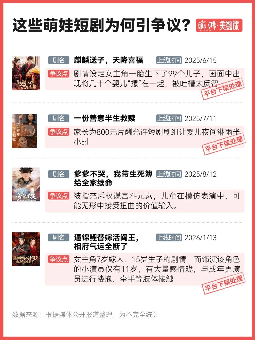 通过梳理相关报道,澎湃美数课工作室发现有关儿童微短剧(又称“萌宝短剧”)的争议并不是个例。
